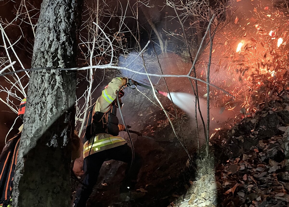 전투기 추락에 의해 발생한 화재는 500m 높이 야산 5부 능선으로 오후 9시12분 경 주불은 진화 되고 현재 잔화 정리 중이다.