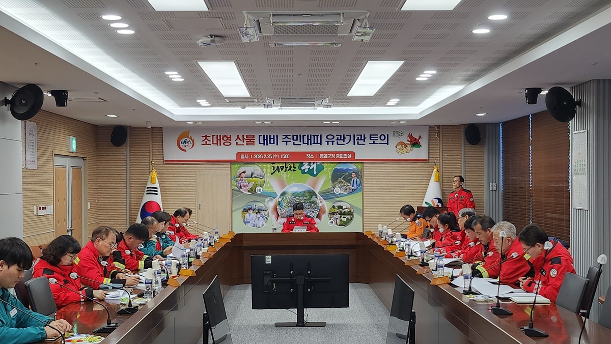 봉화군은 25일 군청 중회의실에서 박시홍 부군수 주재로 대형·초고속 산불 발생 상황을 가정한 주민대피 유관기관 합동 토의훈련을 실시하며 재난 대응체계 전반을 재점검했다.
