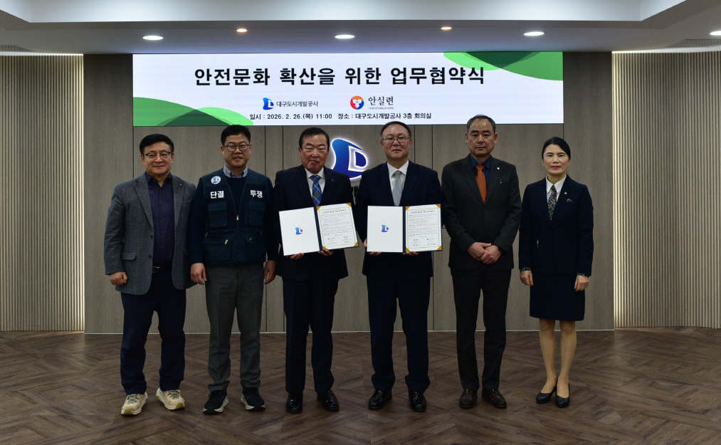 이날 협약식에는 정명섭 사장과 노동조합위원장을 비롯한 공사 관계자, 대구안전생활실천시민연합 관계자 등이 참석해 지역사회 안전문화 정착을 위한 협력 의지를 다졌다.
