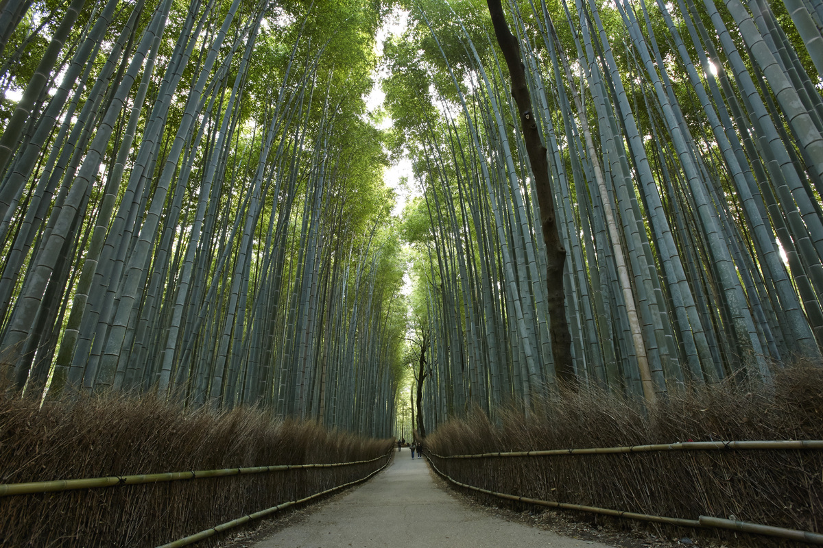 호류지 북문으로 나가면 대숲이 나온다. 한 아름도 넘는 굵은 대나무가 하늘을 향해 시원하게 솟구쳐 있다. 영화 ‘게이샤의 추억’에 등장하며 유명세를 탔고 이후 드라마와 CF에서도 자주 등장하는 대숲이다. 대략 450m 남짓한 길이 깔린 이 대나무 숲은 일본에서도 가장 아름다운 길 중 하나로 손꼽히는 곳이다. 외국인뿐 아니라 일본인들도 자주 찾는 곳으로 전통 복장인 기모노를 입고 데이트를 하거나 웨딩촬영을 하는 사람들을 자주 만날 수 있다. 특히 연인과 함께 찾는다면 인연을 맺어준다는 노노미야 신사에 들러 소원을 빌면서 추억을 남기는 것도 좋겠다.