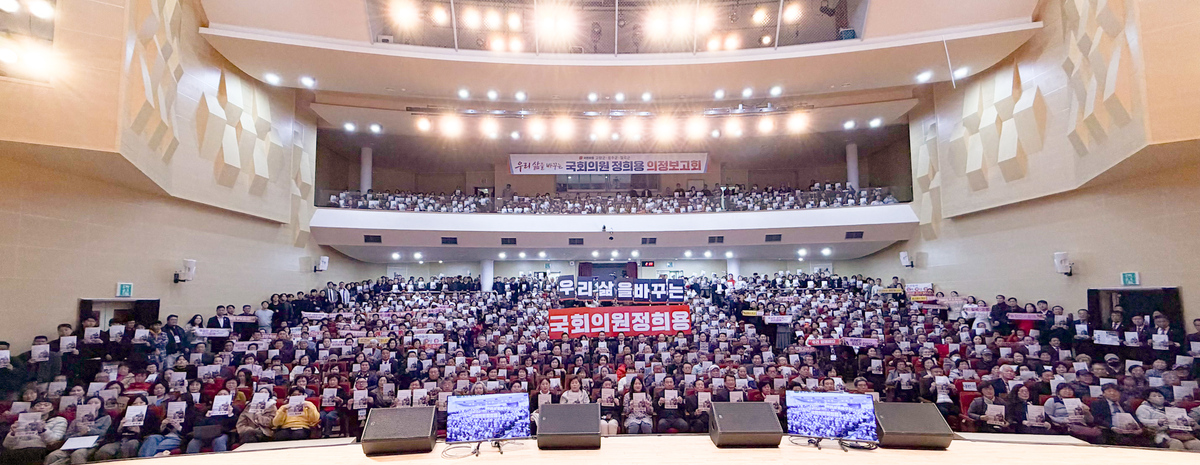 국민의힘 정희용(고령·성주·칠곡) 의원이 지난달 28일 칠곡군 교육문화회관에서 ‘우리 삶을 바꾸는 국회의원 정희용 의정보고회’를 열고 22대 국회 의정활동 성과를 지역 주민들에게 보고했다.
