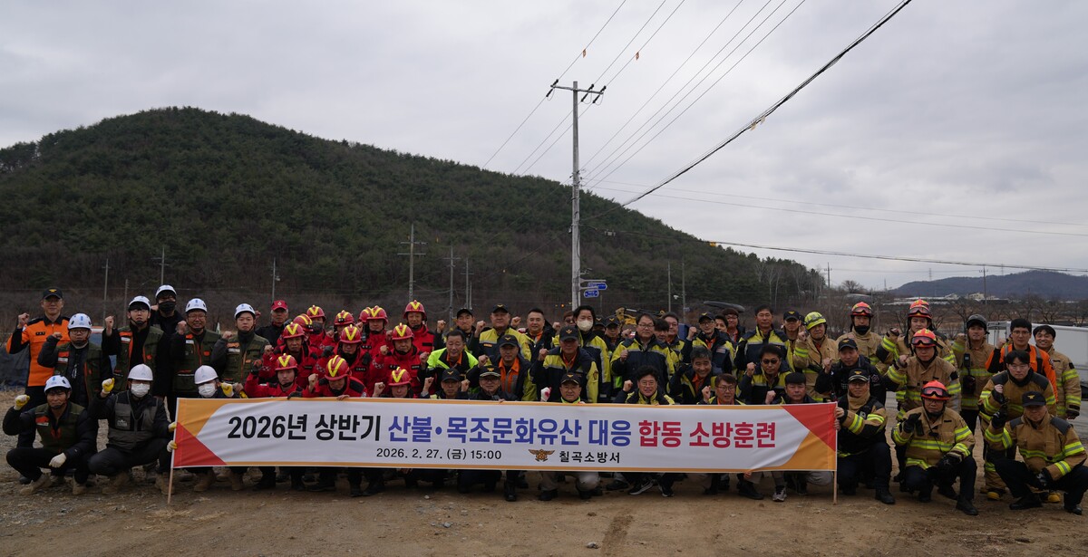 칠곡소방서는 최근, 경북 칠곡군 왜관읍 매원마을 인근 야산에서 ‘2026년 상반기 산불 및 목조문화유산 화재대응 합동소방훈련’을 실시했다.