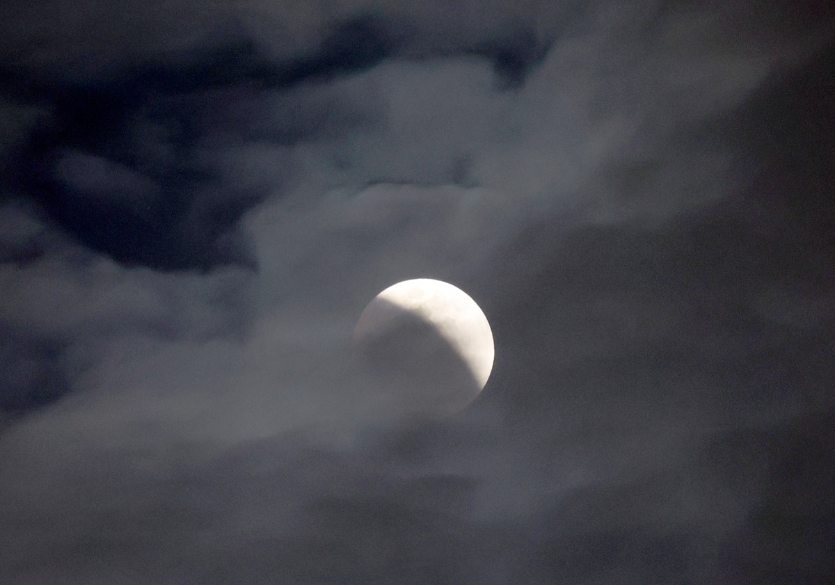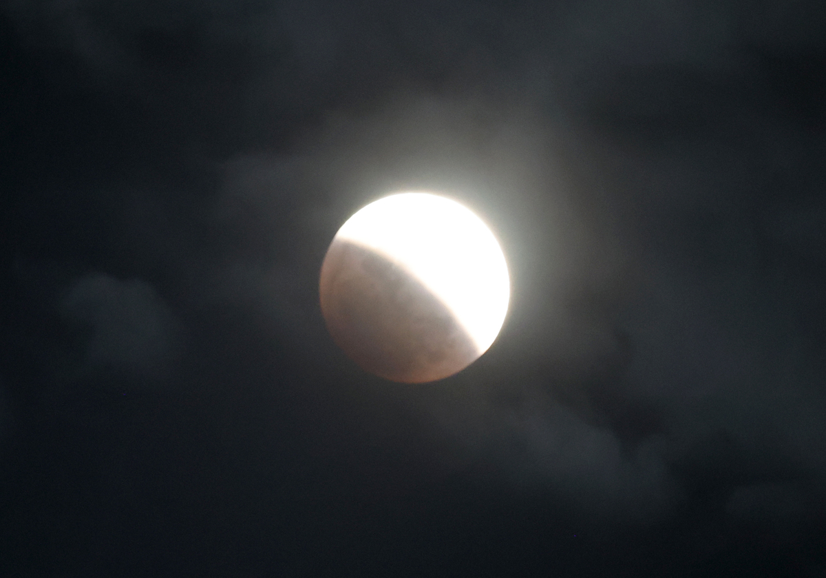 정월대보름인 3일 오후 포항시 밤하늘에 개기월식이 관측되고 있다. 이날 개기월식은 옅은 구름에 가려지고 보이기를 반복하다 7시 30분쯤 구름 속으로 완전히 사라졌다가 8시 15분쯤 옅은 구름 속에서 블러드문의 모습이 나타났다. 정월대보름에 개기월식이 관측되는 것은 1990년 2월 10일 이후 36년 만이다. /이용선기자 photokid@kbmaeil.com