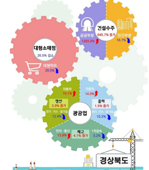 경북도 상황은 더 악화됐다. 대형소매점 판매액이 전년 동월 대비 26.5% 감소했으며 대형마트 판매 역시 29.0% 줄었다.