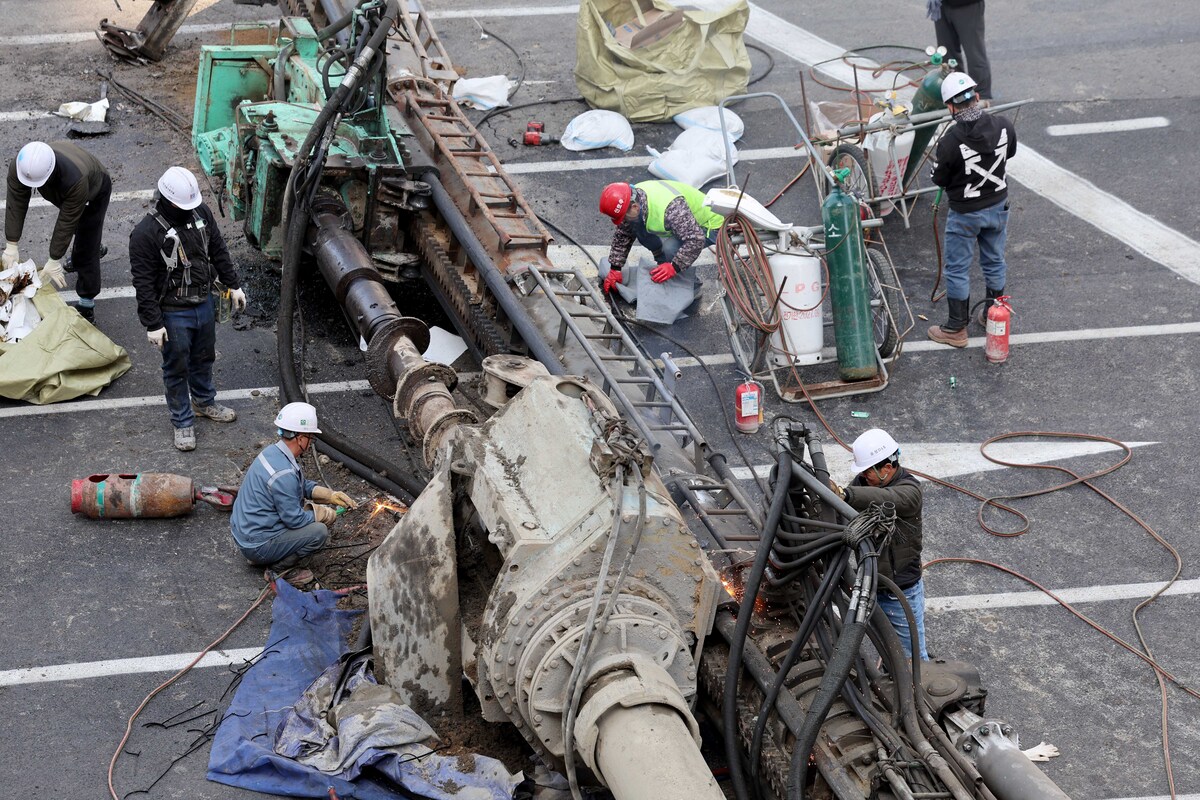 이 사고로 인근을 지나던 택시를 덮치면서 택시 기사와 승객, 천공기 기사 등 3명이 부상을 입었다. 이 가운데 2명은 병원으로 이송돼 치료를 받고 있는 것으로 전해졌다.