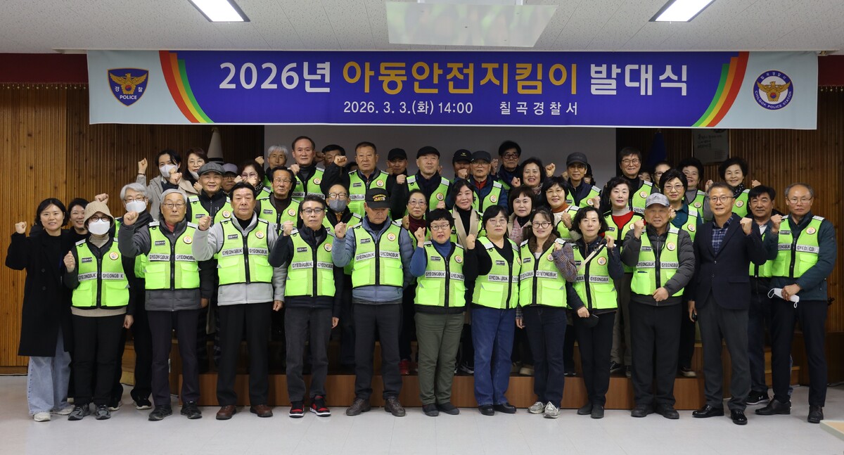 경북 칠곡경찰서는 3일 대회의실에서 ‘2026년 아동안전지킴이 발대식’을 열고 본격적인 활동에 들어갔다. 이날 행사에는 아동안전지킴이 44명이 참석해 위촉장을 받았다.