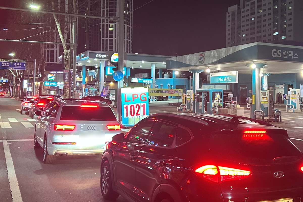 지역 소비자들 사이에서는 “기름값은 내릴때는 찔 3일 오후 8시쯤 대구 북구의 한 주유소에 기름을 넣기 위해 차량들이 길게 줄지어 순서를 기다리고 있다. /경북매일 DB