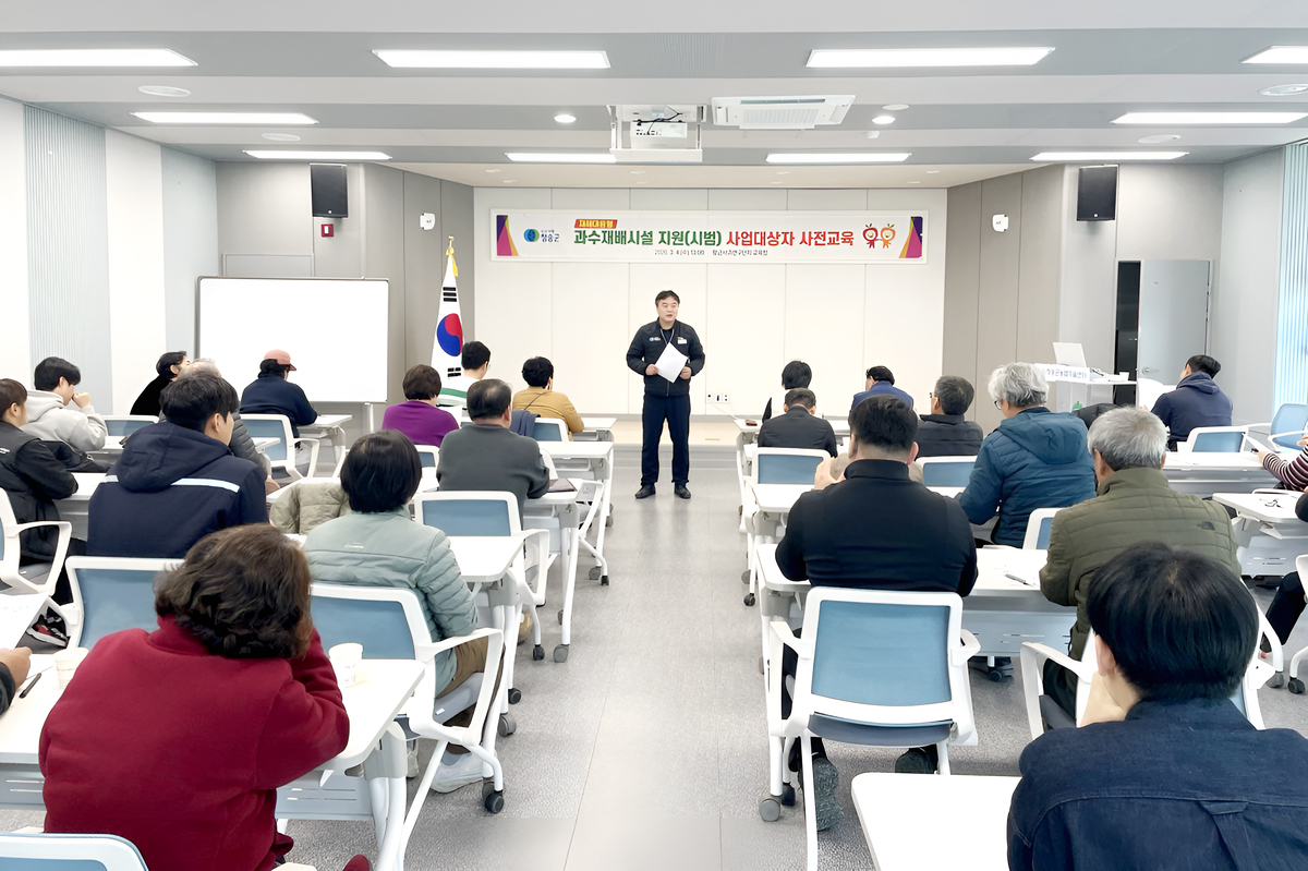 청송군은 최근 청송군농업기술센터에서 ‘재해대응형 과수재배시설 구축지원 시범사업’ 대상 농가 20명을 대상으로 사전 교육을 실시했다.
