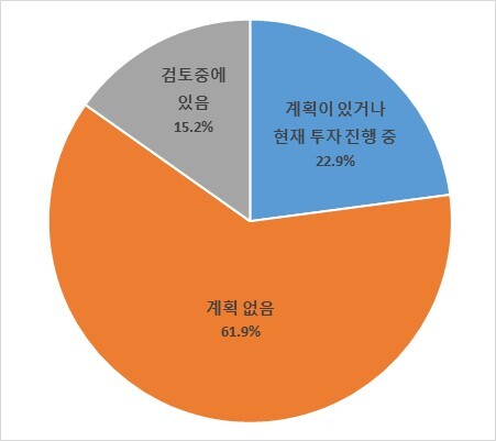 반면 투자 계획이 없는 기업들은 ‘내수 및 수출 수요 부진’(50.9%)과 ‘자금 여력 부족’(41.5%)을 주요 이유로 들었다.
