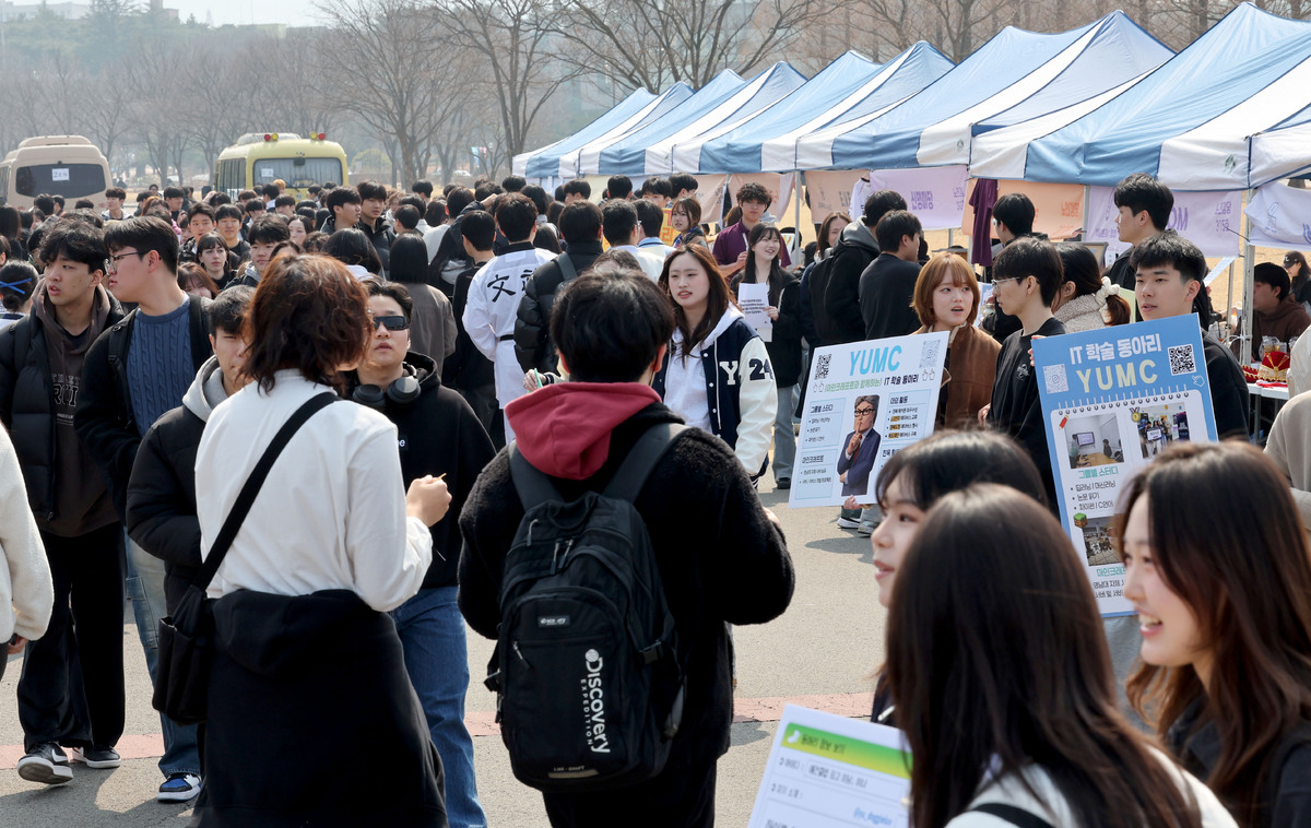 새 학기 시작을 맞아 11일 오후 영남대학교 경산캠퍼스 천마로 일원에서 열린 중앙동아리 박람회 행사장이 자신에게 맞은 동아리를 찾으려는 신입생으로 붐비고 있다. /이용선기자 photokid@kbmaeil.com