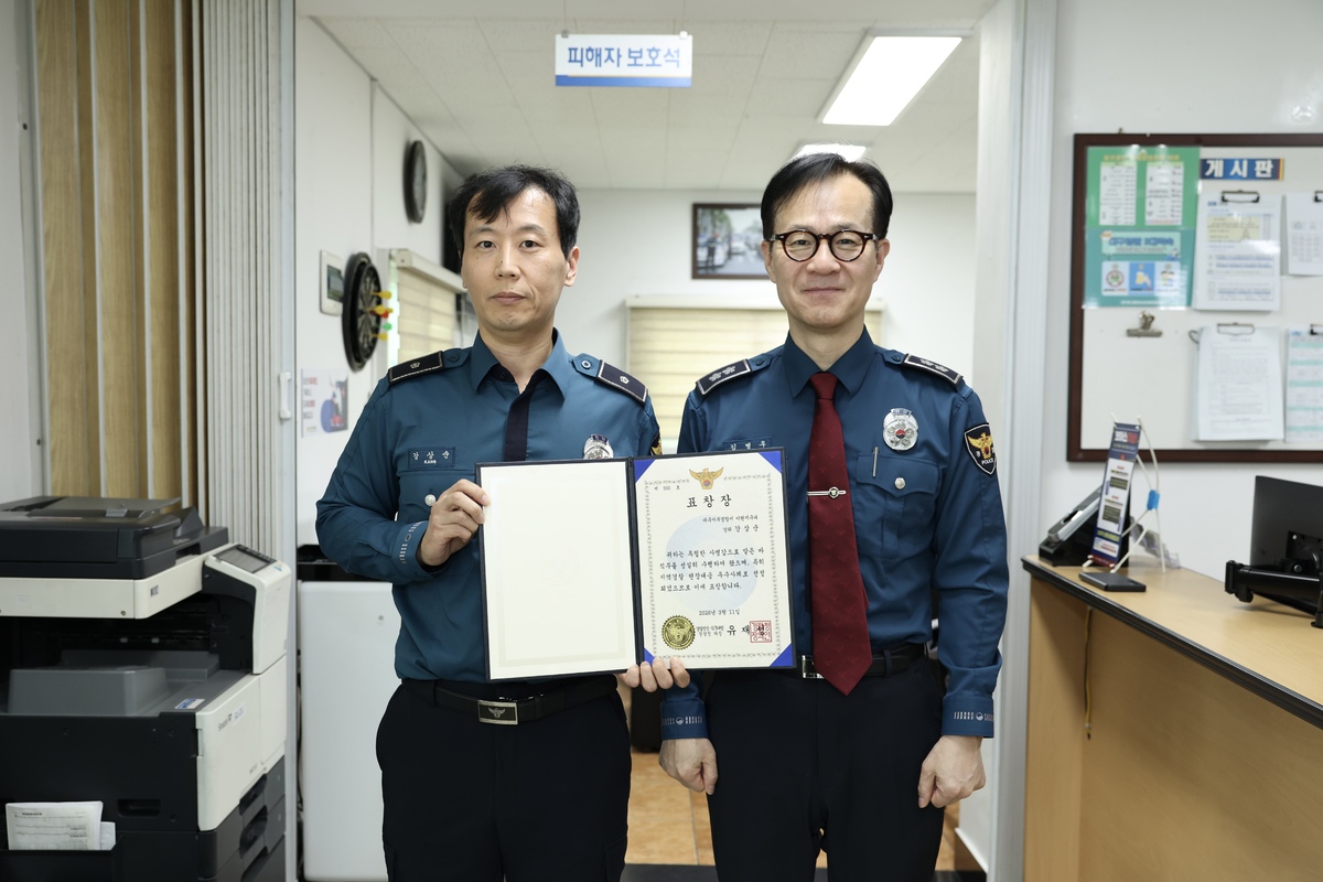 강 경위는 지난 2월 19일 지역 내 절도 신고를 처리하던 중 인근에서 들린 ‘펑’ 하는 소리를 듣고 이상 상황을 감지해 즉시 현장을 확인했다.