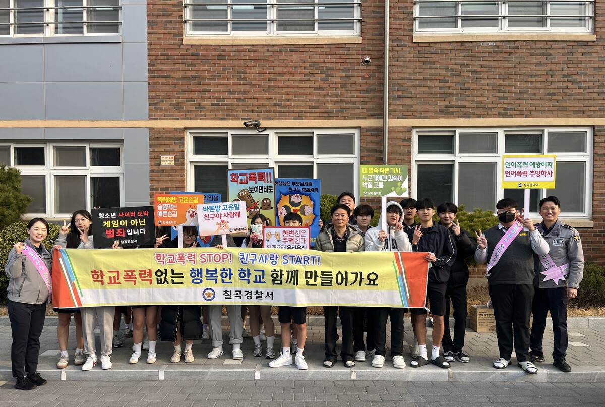 이번 캠페인은 학교폭력 예방과 함께 최근 사회 문제로 떠오르고 있는 청소년 사이버 도박의 위험성을 알리고 건전한 학교 문화를 조성하기 위해 마련됐다. 행사에는 칠곡경찰서 여성청소년계를 비롯해 학교 교직원과 학생 등 20여 명이 참여했다.