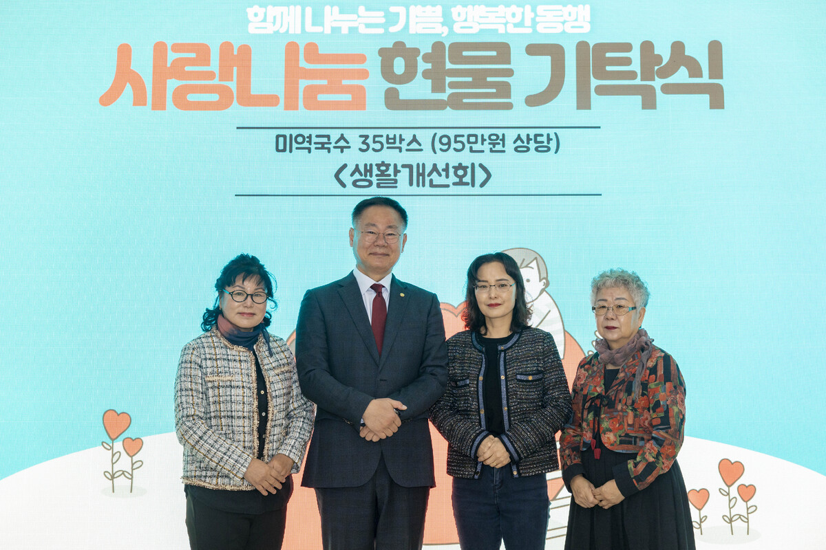 또 같은 날, (사)한국생활개선칠곡군연합회(회장 박채원)는 나눔문화 확산을 위해 미역국수 35박스(95만원 상당)를 관내 사회복지시설에 기탁했다. 칠칠곡곡협동조합(대표 손제순)도 지역 어려운 이웃을 돕기 위해 떡국떡 30박스(210만원 상당)를 사회복지시설에 전달하며 이웃사랑 실천에 동참했다.