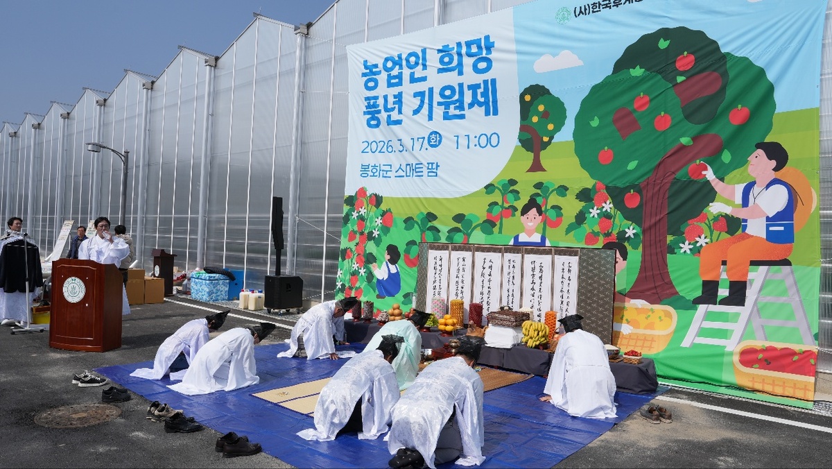 봉화군은 지난 17일 봉성면 창평리에 위치한 임대형 스마트팜단지에서 ‘2026년 봉화군 농업인단체 풍년기원제’가 성황리에 개최됐다. 이번 행사는 지역 농업인단체들이 연합해 공동 주최하고, (사)한국후계농업경영인 봉화군연합회가 주관했다.