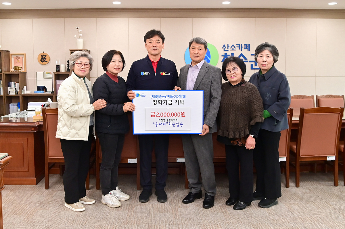 청송군 파천면 풍물동아리 ‘흥나리’ 회원들이 지난 18일 (재)청송군인재육성장학회에 장학금 200만 원을 기탁했다.