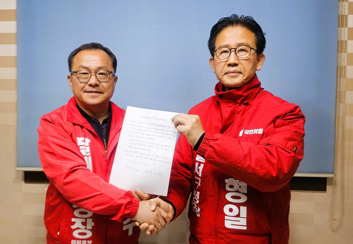 국민의힘 대구 달서구청장 공천 경쟁에서 김형일·홍성주 예비후보가 후보 단일화에 전격 합의하면서 경선 구도가 요동치고 있다. 다자 경쟁 구도에서 단일 후보 축이 형성되면서 당내 공천 판세에도 적지 않은 영향을 미칠 전망이다.