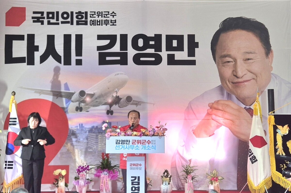김영만(전 군위군수) 국민의힘 군위군수 예비후보가 23일 군위읍 중앙길에 선거사무소를 열고 본격적인 선거전에 돌입했다. 이날 개소식에는 시·군의원과 지역 주민 등 1500여 명이 참석했다.