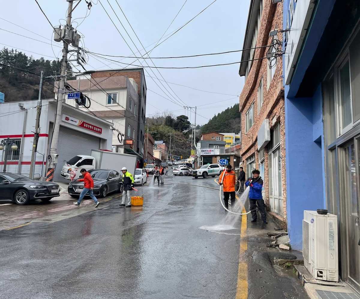 울릉 남성 의용소방대는 지난 22일, 주말도 반납한 채 울릉의 관문인 도동 시가지 일대에서 대대적인 환경 정비 활동을 펼쳤다. 이번 정비는 겨울철 내내 도로와 건물 곳곳에 쌓인 미세먼지와 오염물을 제거해 쾌적한 관광 환경을 조성하고자 마련됐다.