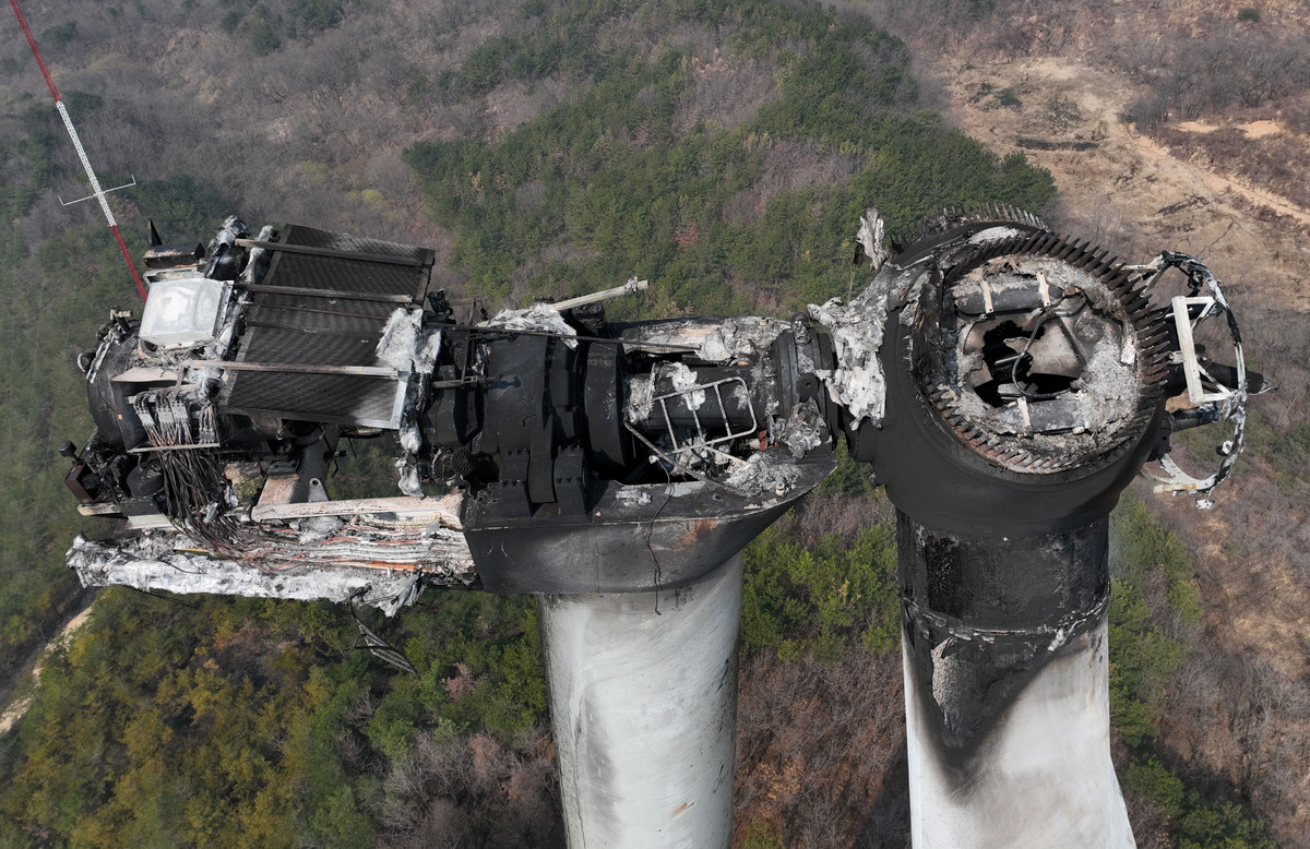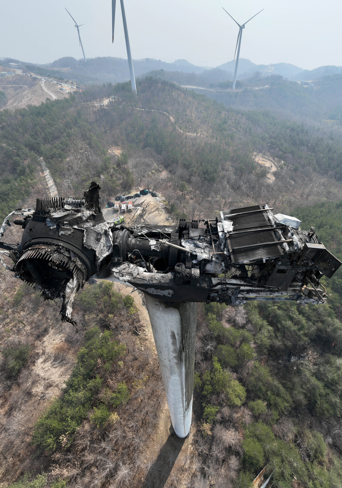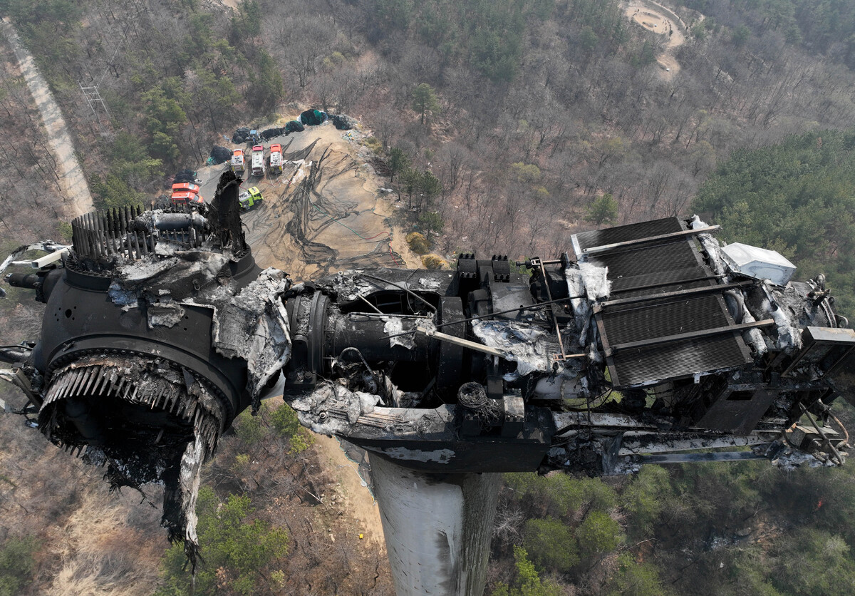 처참하게 타버린 영덕 풍력발전기