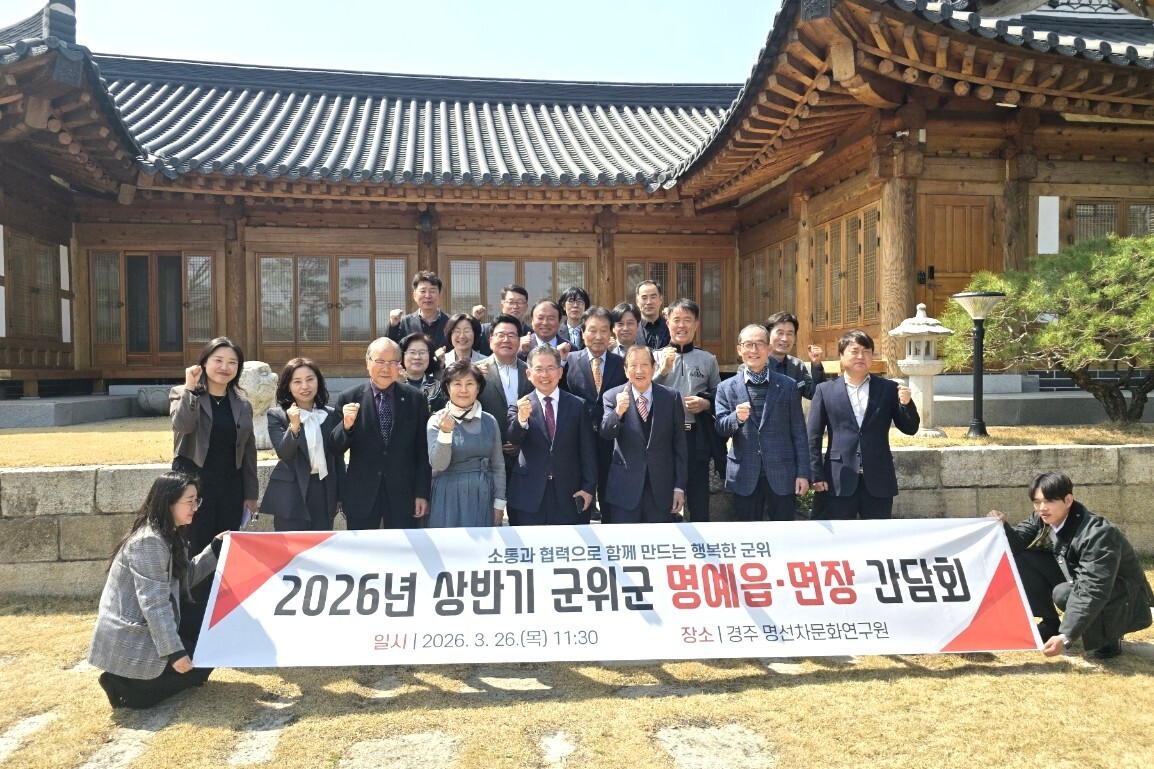 대구 군위군은 26일 경주 명선차문화연구원에서 명예읍·면장과 정책간담회를 열고 지역 현안 의견을 공유하며 민관 협력 기반 강화에 나섰다.