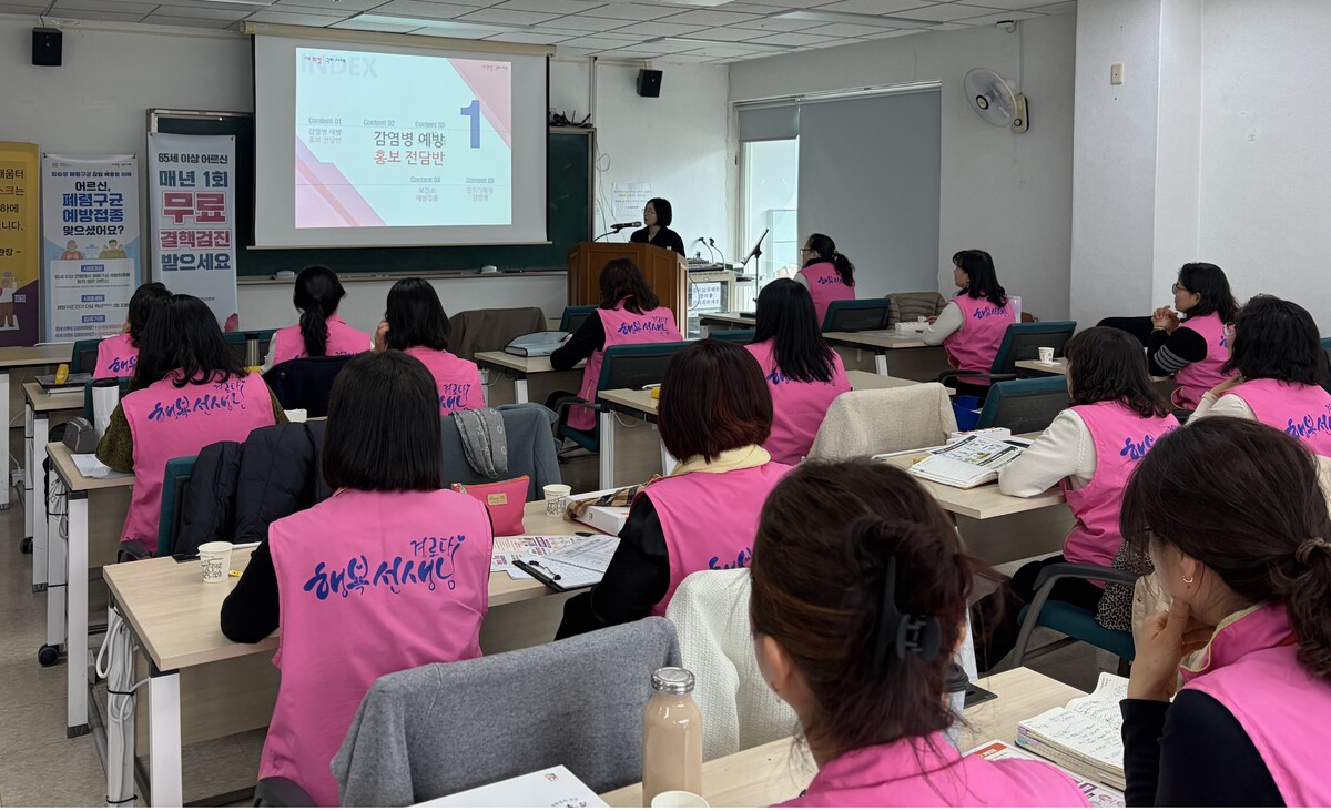감염병관리과 2개 팀, 총 12명으로 구성된 전담반은 지난 16일 (사)대한노인회 구미시지회와 협력해 ‘경로당 행복선생님’을 대상으로 첫 예방 교육을 실시했다. 이번 교육은 행복선생님들이 각 경로당을 방문해 감염병 예방 수칙을 전달하는 ‘방역 메신저’ 역할을 수행하도록 한 점에서 의미를 더했다. 현장 중심의 교육과 전파 구조를 통해 고령층 대상 감염병 대응력을 한층 높였다는 평가다.