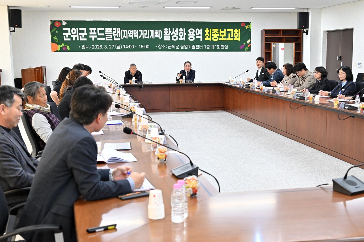 군위군은 지난 27일 군위군농업기술센터에서 ‘푸드플랜 활성화 운영 용역 최종보고회’와 ‘2026년 제1차 먹거리위원회’를 열고, 군위형 먹거리 선순환 체계의 완성도를 점검했다. 이번 행사는 대구역 직매장 개장을 앞두고 계획 중심에서 현장 실행 체계로 전환되는 시점을 알리는 자리로 평가된다.