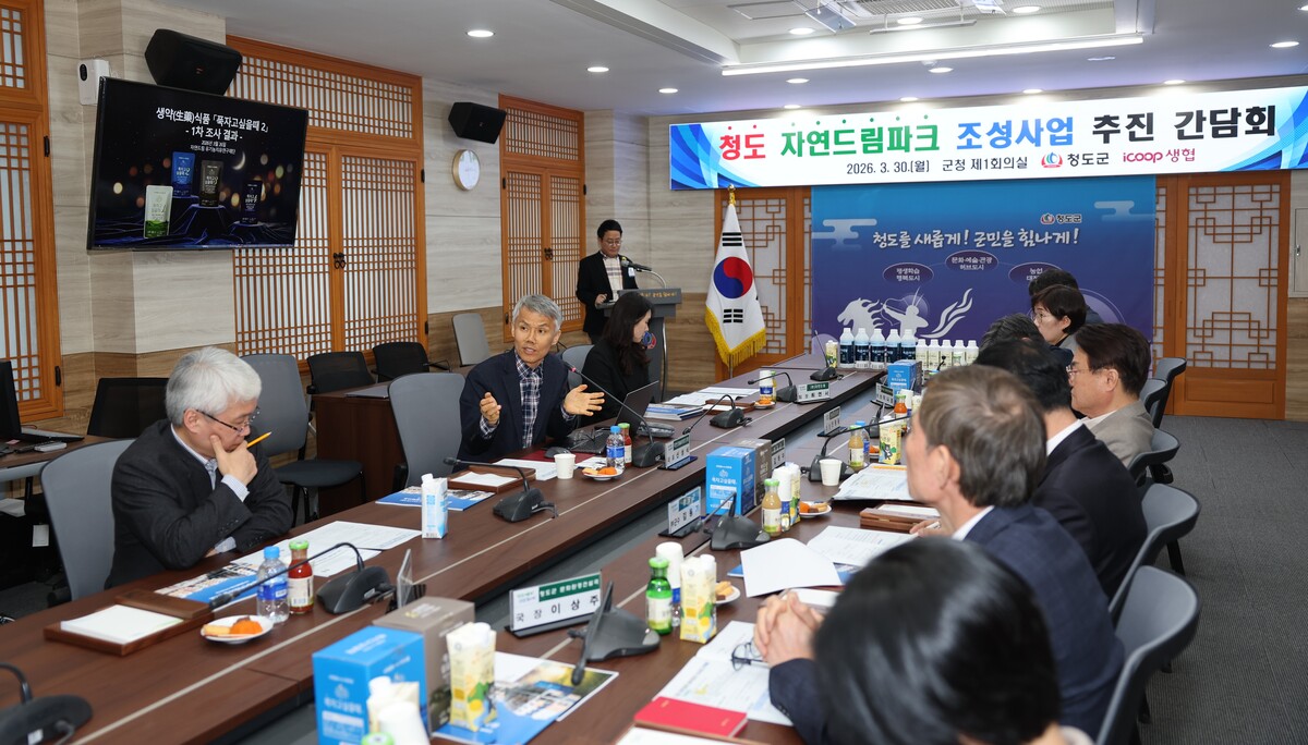 청도군이 30일 아이쿱 소비자 생활협동조합 연합회(이하 아이쿱생협)와 ‘청도 자연 드림파크 일반산업단지’ 협업 체계 구축 강화를 위한 간담회로 사업 추진 현황을 공유하며 상호 협력 방안을 논의했다.