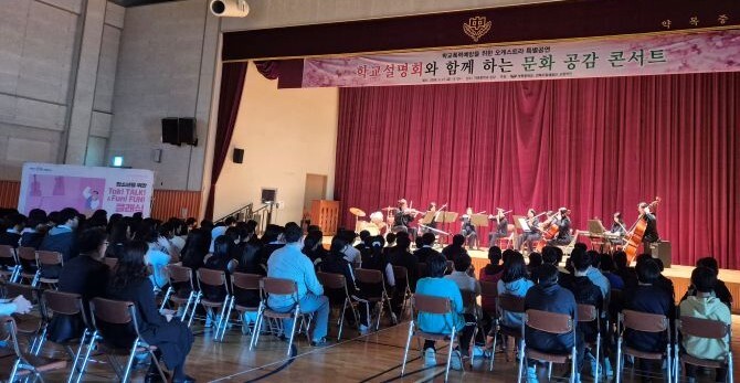양희문 교장은 “오케스트라 공연을 통해 교육공동체가 함께 공감하는 의미 있는 시간을 가졌다”며 “앞으로도 문화예술과 연계한 교육활동을 확대해 학생들의 전인적 성장과 학교폭력 예방에 힘쓰겠다”고 말했다.