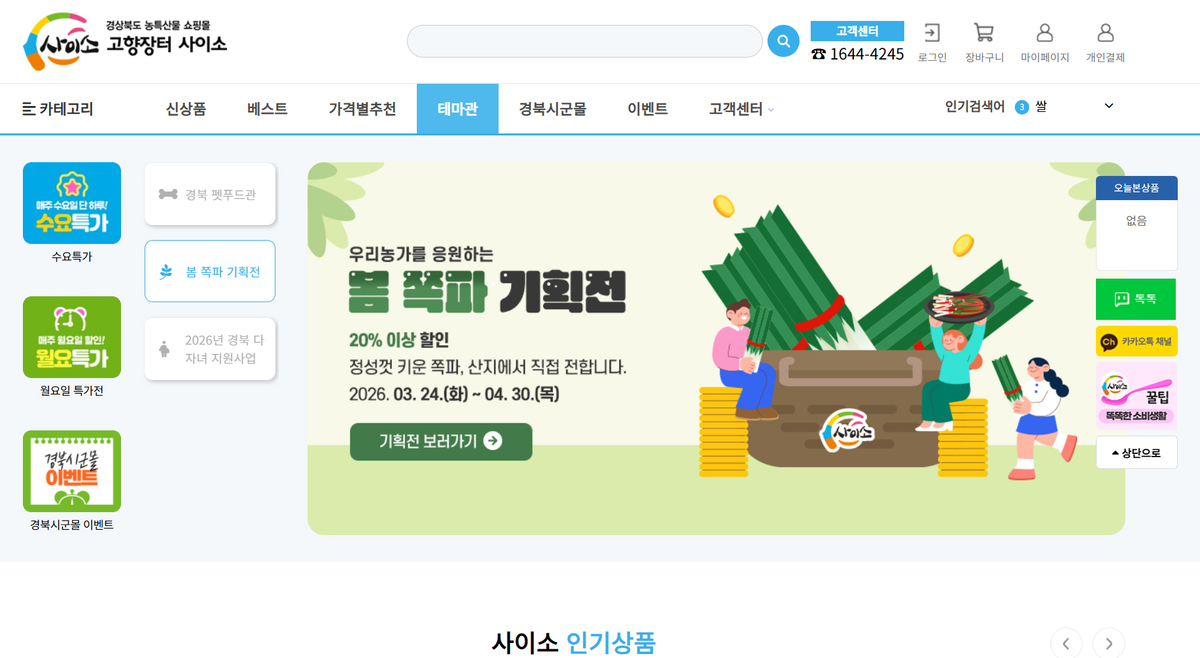 박찬국 경북도 농축산유통국장은 “19년간 도민과 함께 성장해온 사이소가 이번 시스템 개편을 통해 대한민국 최고의 공공 상생 쇼핑몰로 다시 한번 도약하고자 한다”며 “4월 한 달간 준비한 풍성한 잔치에 꼭 참여해 농민들의 진심이 담긴 우수 농산물을 착한 가격에 만나보시길 바란다”고 말했다.