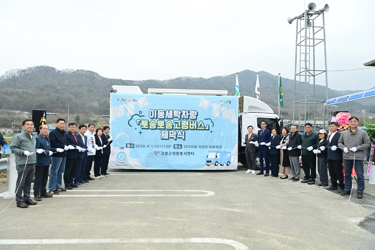 (사)고령군종합자원봉사센터(센터장 이강하)는 4월 1일 대가야읍 저전리 마을회관에서 이동세탁차량 ‘뽀송뽀송 고령버스’ 제막식을 개최하고 본격적인 운영에 들어갔다.