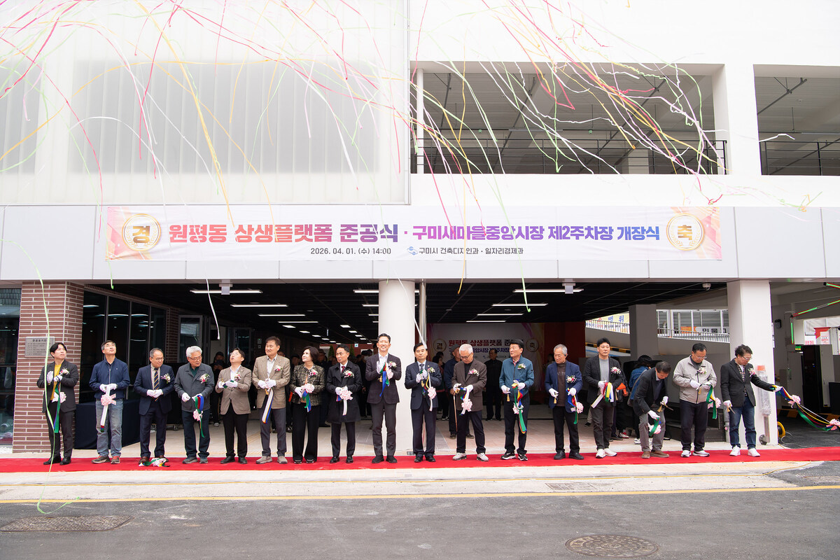 구미시는 이날 원평동 새마을중앙시장 인근에서 김장호 구미시장 및 박교상 구미시의회 의장, 도·시의원과 시민등 100여명이 참석한 가운데 상생플랫폼 준공식과 제2주차장 개장식을 개최했다.