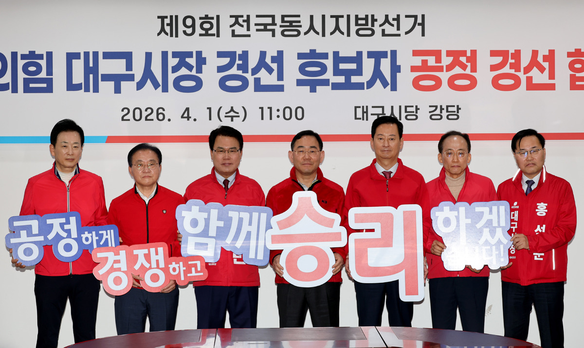 국민의힘 대구시장 경선 후보자들의 ‘공정 경선 협약식’이 컷오프(공천 배제)된 주호영 의원의 돌발 등장으로 발칵 뒤집혔다. 법원에 가처분 신청을 내고 당 지도부와 각을 세우고 있는 주 의원이 행사장 한가운데 자리를 차지하면서 경선 후보들 사이에서는 공개적인 불만이 터져 나오는 등 촌극이 빚어졌다.