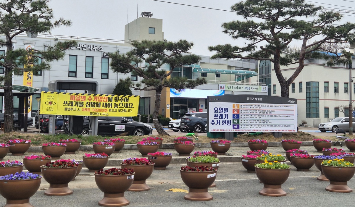 풍각면은 한 달간 주민 홍보로 적치장 정비의 당위성을 알리고 대형 화분으로 화단을 조성해 다양한 봄꽃을 심었다.