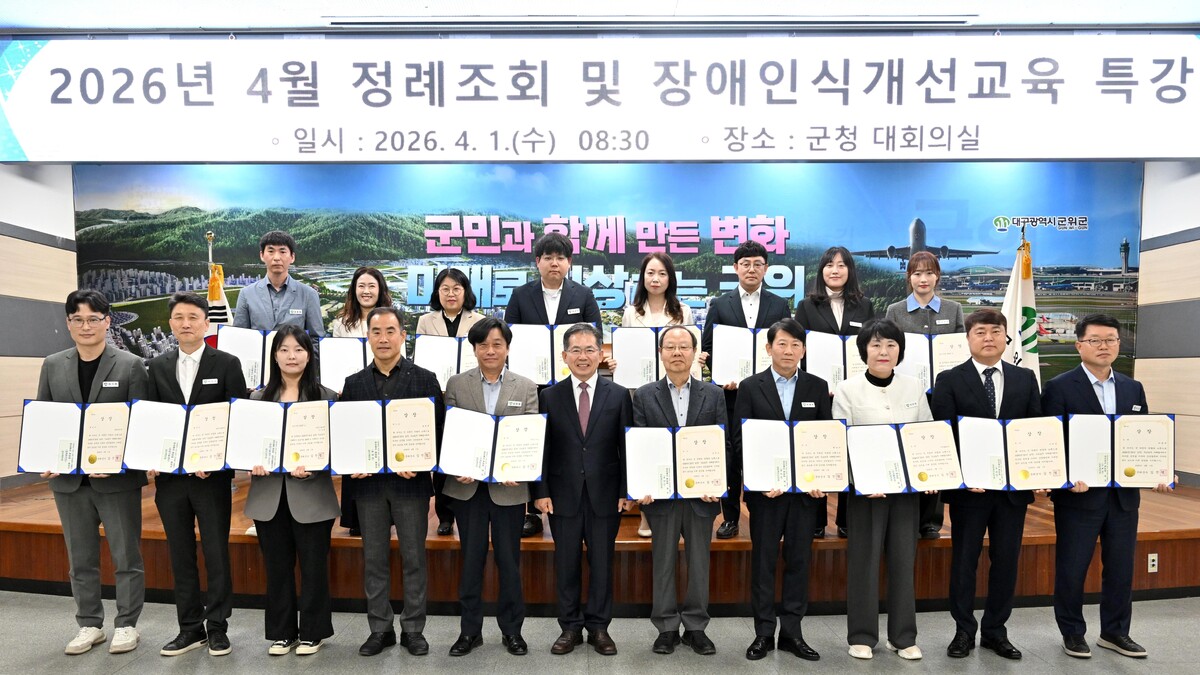 군위군은 지난 1일 정례조회에서 2026년도(2025년 실적) 주요업무 자체평가 우수부서와 군정 BEST, 공모사업 BEST를 시상했다고 밝혔다. 이번 평가는 정부업무평가 기본법에 따라 공통·정성·자체 지표와 가감점을 반영해 실시됐으며, 군정조정위원회와 주요업무평가위원회 심의를 거쳐 최종 확정됐다.