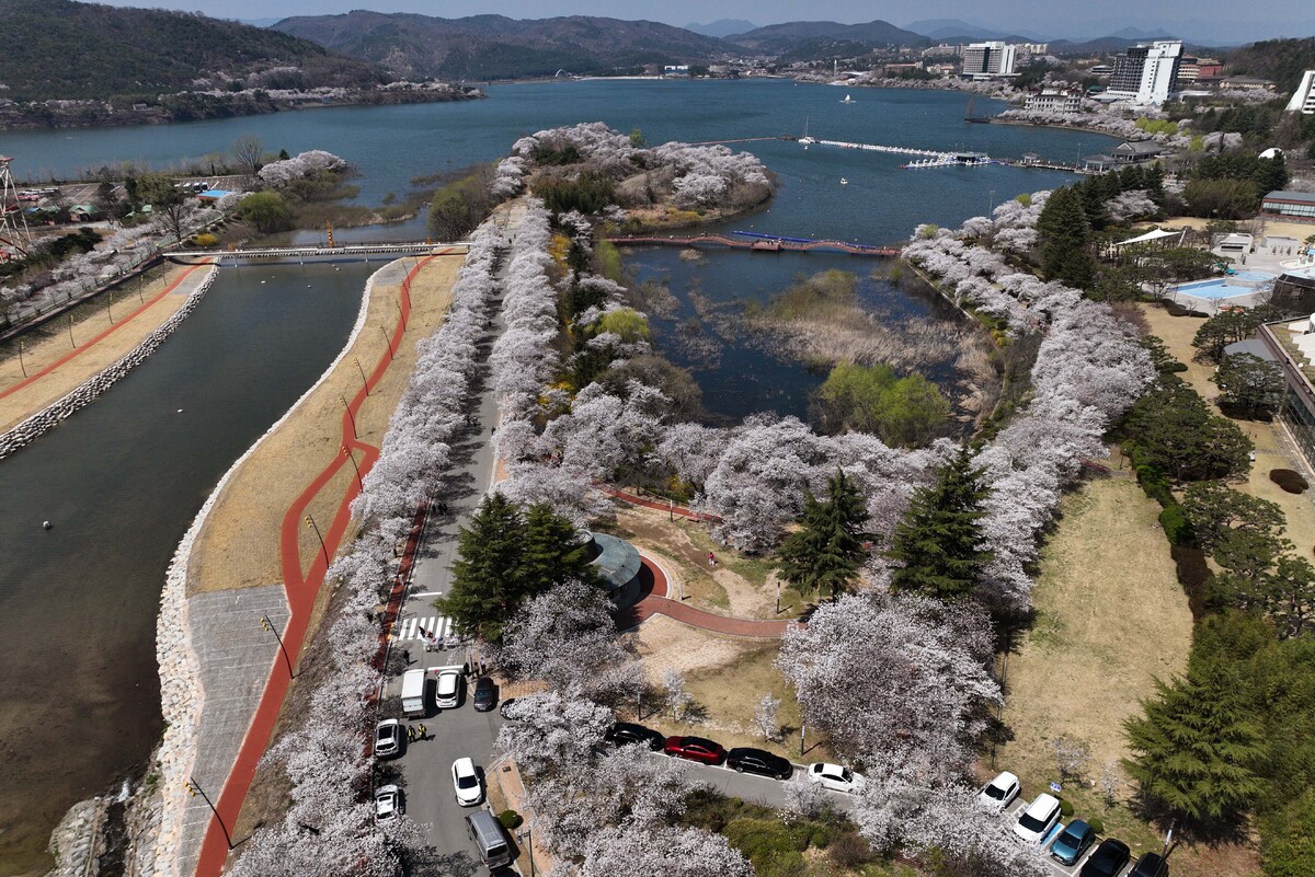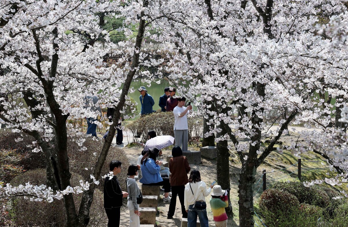 봄꽃의 여왕. 벚꽃 군락지가 있는 경주에 연분홍빛 벚꽃의 향연이 펼쳐지고 있다. 대표적인 장소인 흥무로의 벚꽃 터널은 이미 절정을 맞이했고, 시내 지역과 기온 차이로 며칠의 시차를 두고 피는 보문단지의 벚꽃은 이번 주말 절정을 맞을 것으로 보인다. 망설이면 올해의 벚꽃을 놓칠 수 있다. 이번 주말이 지나면 이토록 탐스러운 벚꽃을 못 볼 수도 있다. 2일 오후 경주 보문단지 황룡원과 보문정을 찾은 관광객들이 꽃놀이를 즐기고 있다. /이용선기자 photokid@kbmaeil.com