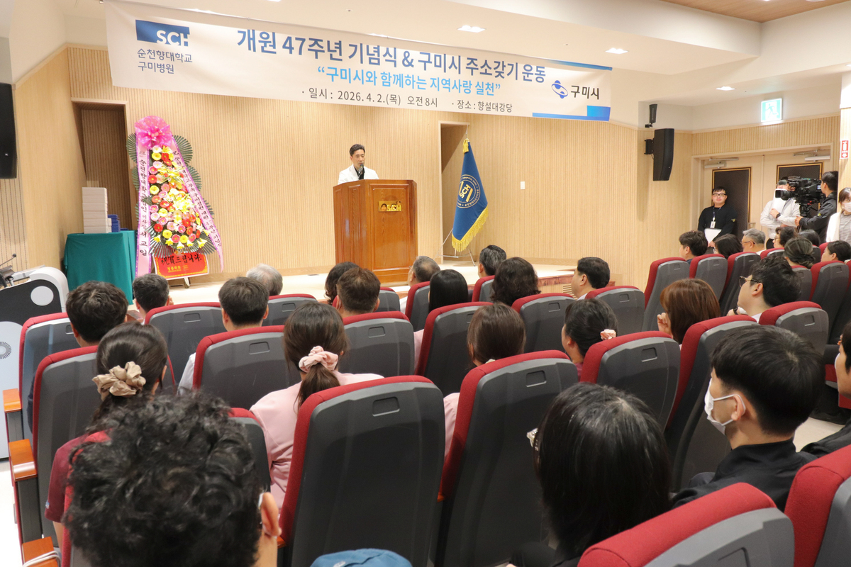 순천향대 구미병원은 2일 본원 향설대강당에서 김장호 구미시장과 김성호 병원장을 비롯한 주요 보직자 및 교직원 150여 명이 참석한 가운데 개원 47주년 기념식을 개최했다.