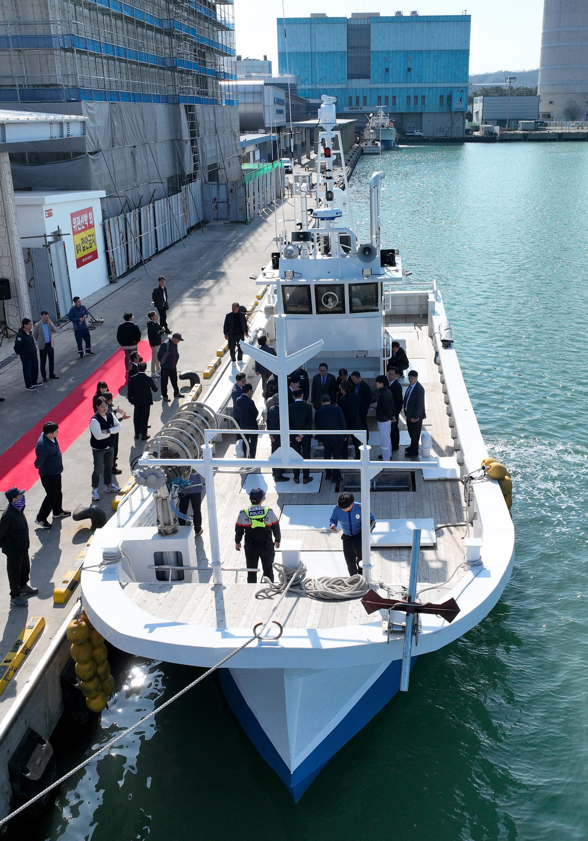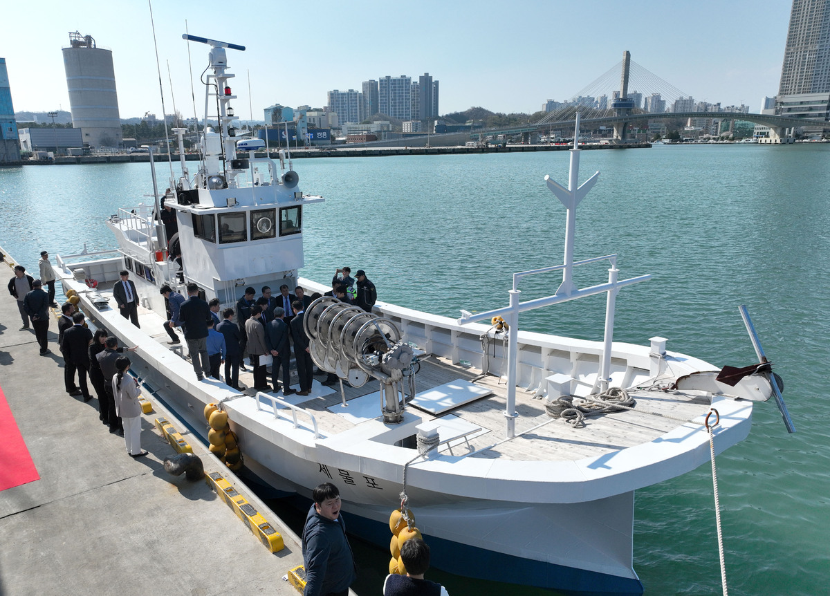 해양수산부의 ‘에너지 절감형 친환경 어선개발사업’으로 추진된 전기복합 추진 어선 시제선 진수식이 2일 오후 포항시 남구 송도동 포항수협 부두에서 열렸다. 행사에 참석한 내빈과 관계자들이 선박 구조를 살펴보고 있다. /이용선기자 photokid@kbmaeil.com