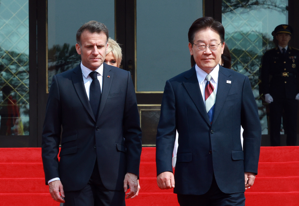 이재명 대통령은 3일 청와대에서 국빈 방한한 에마뉘엘 마크롱 프랑스 대통령에 대한 공식 환영식을 열었다.