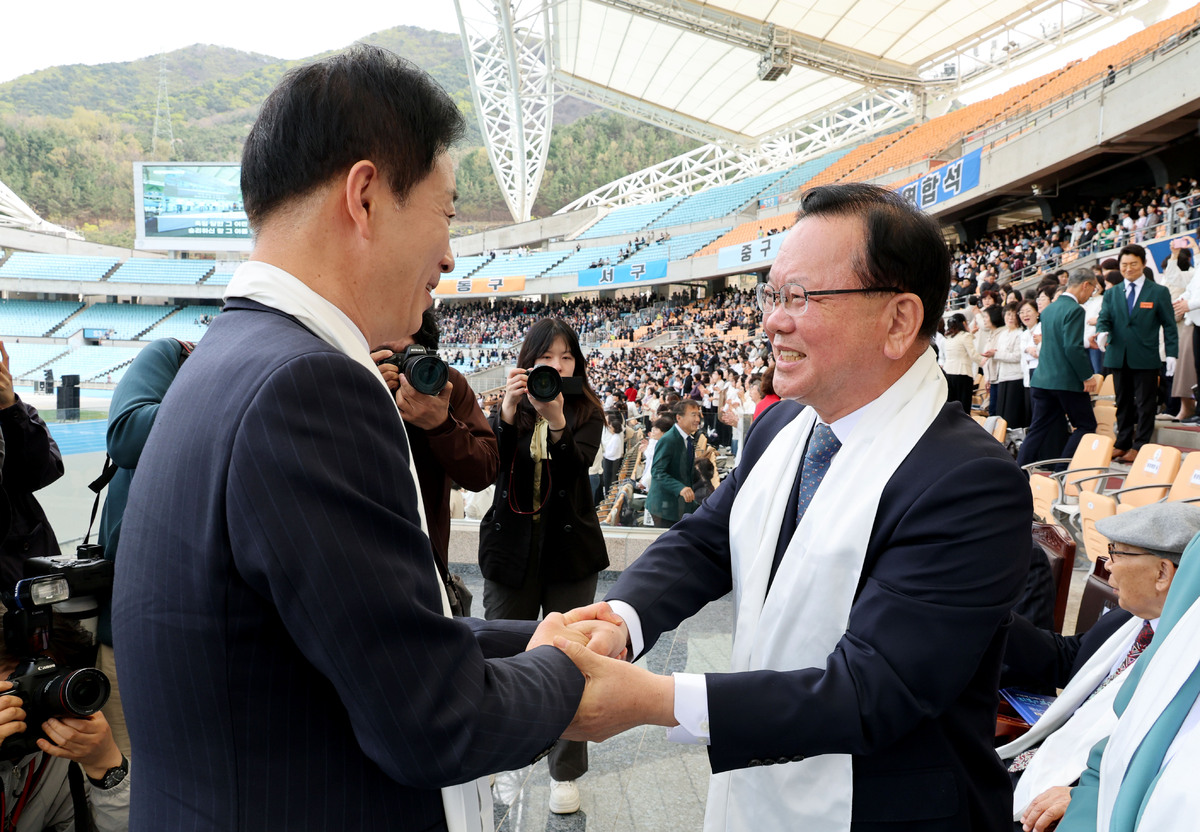 6.3 지방선거에서 대구시장 출마 포부를 밝힌 정치인과 기관·단체장, 교회 관계자들이 5일 오후 대구 스타디움에서 열린 부활절 연합예배에서 예수님의 부활을 축하하고 있다. /이용선기자 photokid@kbmaeil.com