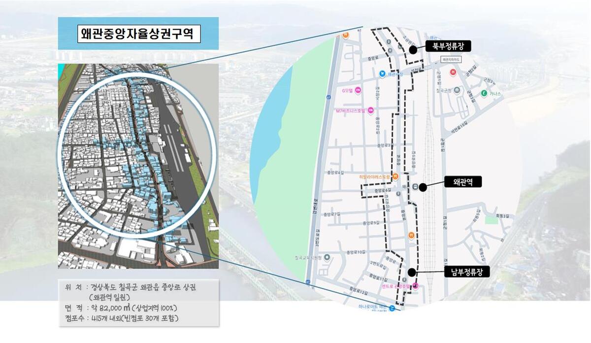 경북 칠곡군 왜관읍 원도심 상권이 활성화의 전기를 맞았다. 칠곡군은 왜관 원도심 일대가 지난 3월 31일 ‘자율상권구역’으로 최종 지정됐다고 밝혔다.