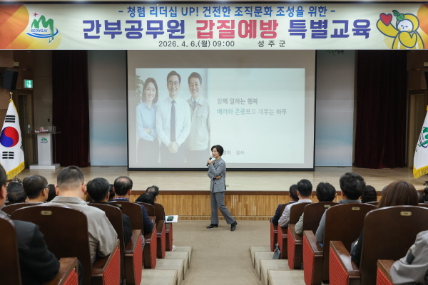 성주군이 간부 공무원들을 대상으로 한 ‘갑질 예방 특별교육’을 실시하며 청렴하고 건강한 공직문화 조성에 박차를 가하고 있다.