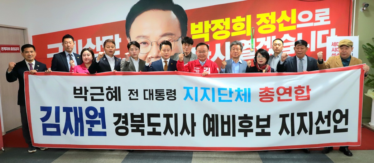 경북도지사 선거를 앞두고 박근혜 전 대통령을 지지하는 핵심 보수단체 인사들이 7일 김재원 예비후보에 대한 지지를 공식적으로 선언했다.