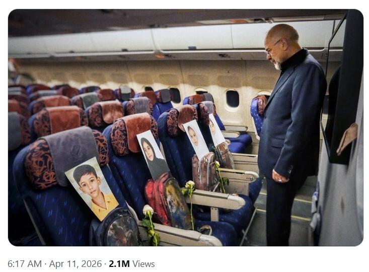 파키스탄에서 11일(현지시간) 열리는 종전협상을 위해 현지에 도착한 이란 대표단이 미·이스라엘의 공습으로 대규모 사상자가 발생한 초등학교 희생자의 유품과 영정사진을 기내 좌석에 싣고 이동했다.