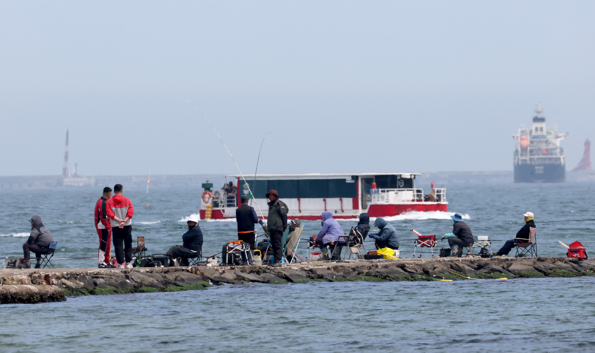 전형적인 4월의 봄 날씨를 보인 12일 오후 포항시 남구 송도동 형산강 하구 방파제에서 강태공들이 봄 낚시를 즐기고 있다. /이용선기자 photokid@kbmaeil.com