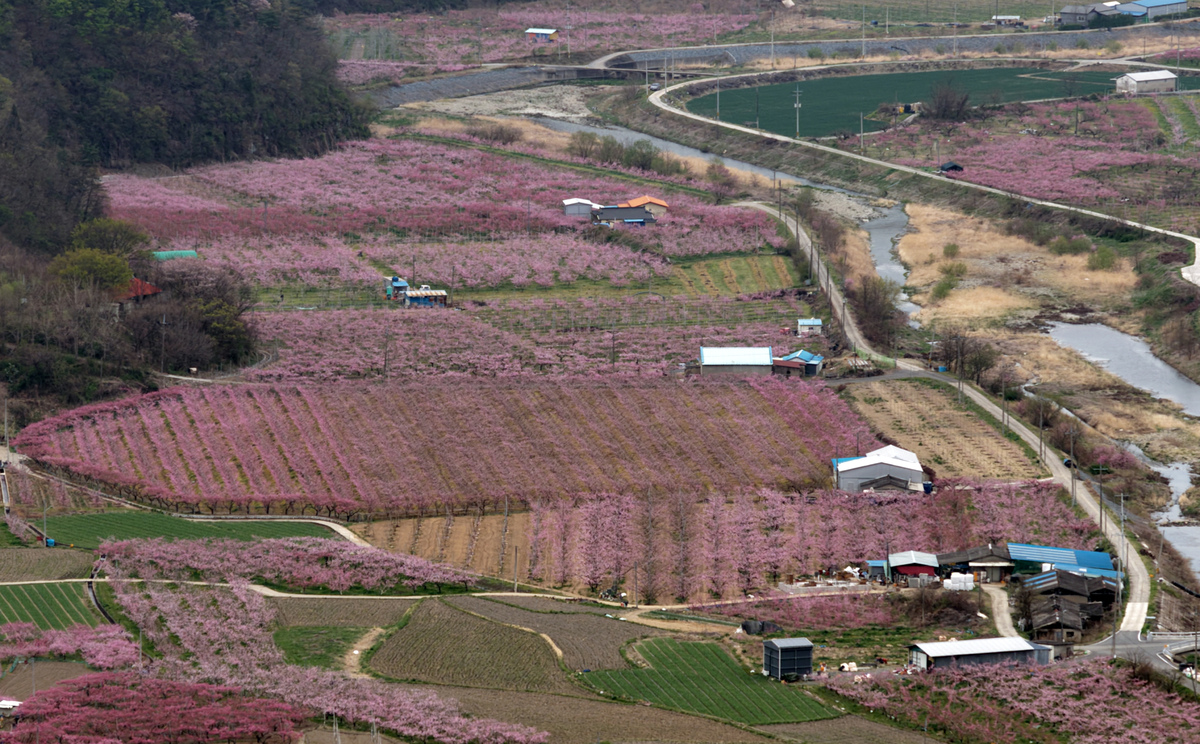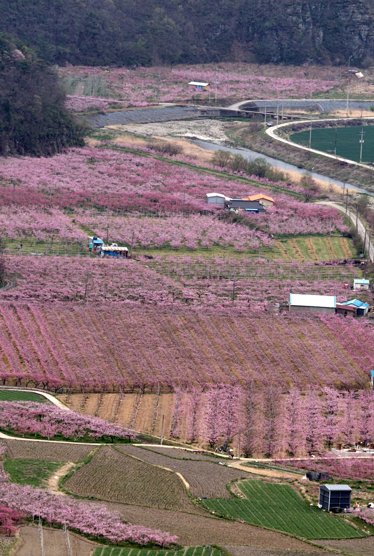 14일 오후 복숭아 재배 농가가 모여있는 영천시 임고면 금대리 일원에 분홍빛 복사꽃이 만개해 장관을 이루고 있다. /이용선기자 photokid@kbmaeil.com