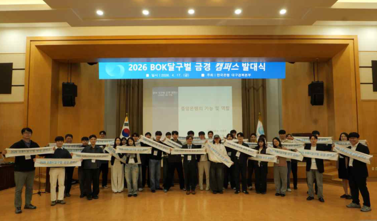 19일 한국은행 대구경북본부는 지난 17일 대구·경북 지역 대학생을 대상으로 ‘BOK달구벌 금경 캠퍼스’ 발대식을 개최했다고 밝혔다. 이 프로그램은 지역 청년들이 차세대 금융·경제 리더로 성장할 수 있도록 지원하기 위해 올해 처음 도입됐다.