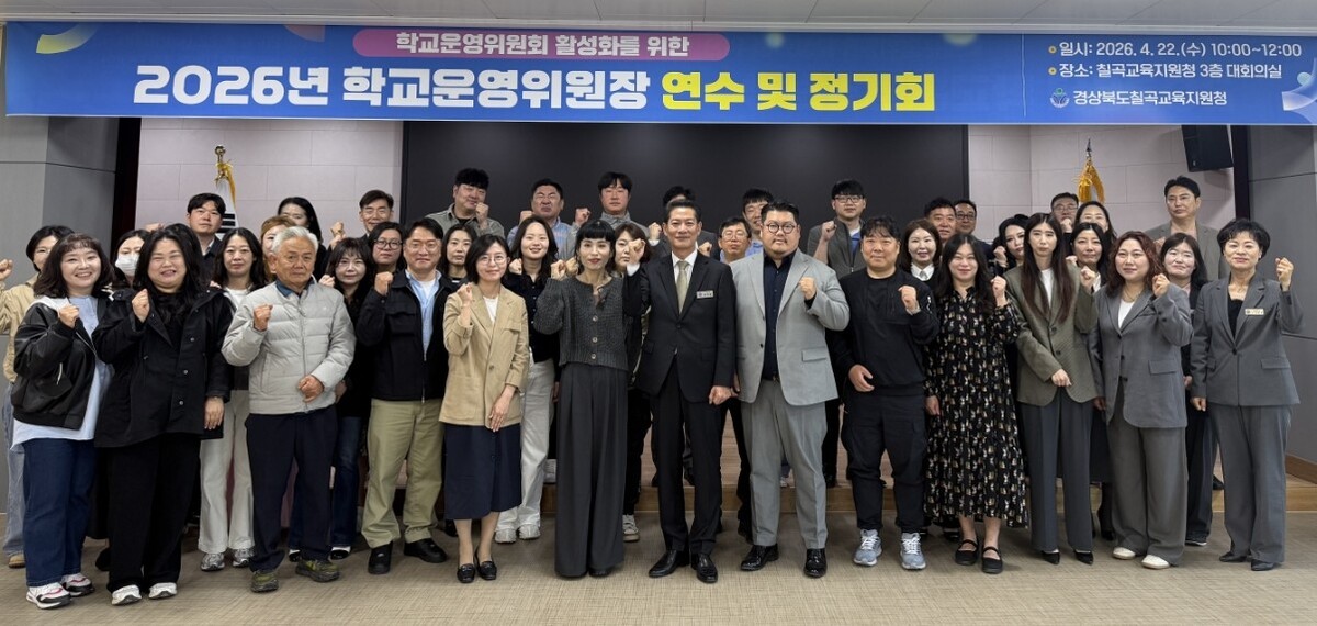 경상북도칠곡교육지원청(교육장 김진화)은 22일 교육지원청 대회의실에서 관내 유·초·중·고등학교 학교운영위원장 39명을 대상으로 ‘2026년 학교운영위원장 연수 및 정기회’를 개최했다.