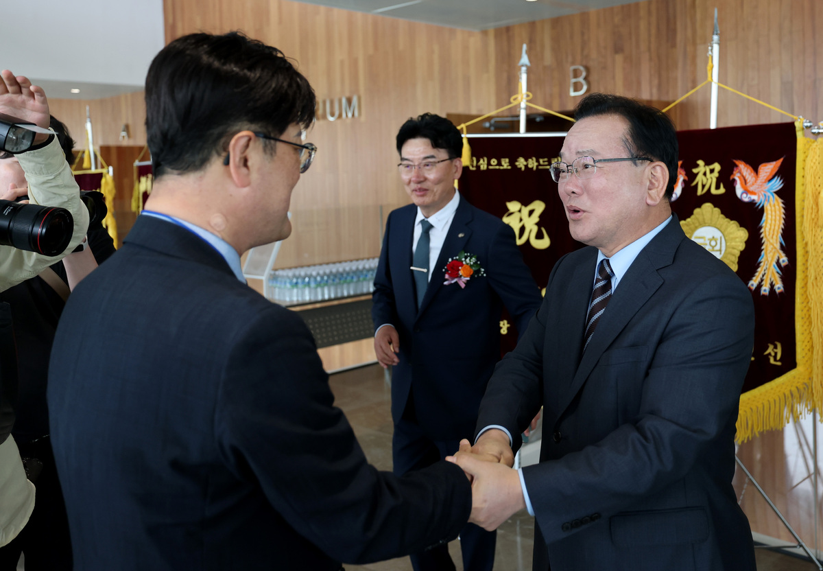 김부겸 더불어민주당 대구시장 예비후보가 22일 오후 대구 북구 iM뱅크에서 열린 ‘제71회 정보통신의 날 기념행사’에서 참석자들과 인사하고 있다. /이용선기자 photokid@kbmaeil.com