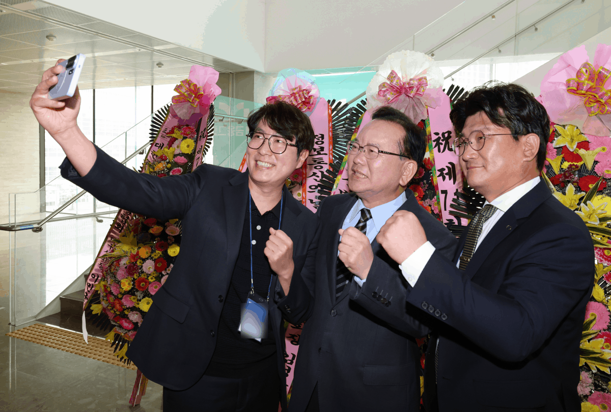 22일 오후 대구 북구 iM뱅크에서 열린 ‘제71회 정보통신의 날 기념행사’에 참석한 김부겸 더불어민주당 대구시장 예비후보가 참석자의 요청으로 기념 촬영을 하고 있다. 파이팅 포즈로 촬영 후 참석자들이 승리의 ‘V’ 모습을 요청하자 김 후보 측 수행원이 ‘V’는 기호 2번을 연상시킨다며 농담을 건냈다. 김 후보와 참석자는 웃으며 엄지를 치켜들고 추가 촬영을 했고, 이 과정에서 김 후보는 본능적으로(?) ‘V’ 포즈를 취하지 않았다. /이용선기자 photokid@kbmaeil.com