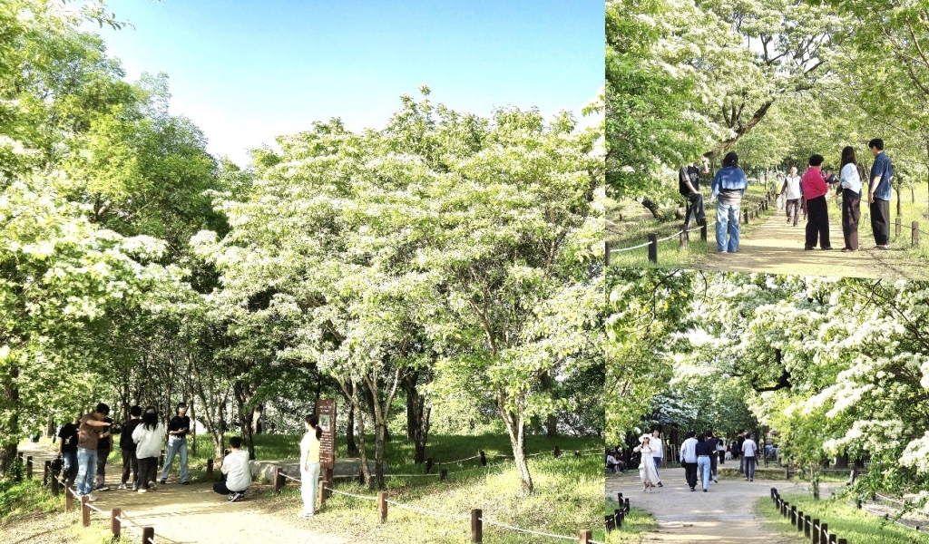 대구 달성군 옥포읍 교항리 이팝나무 군락지가 하얀 꽃으로 뒤덮이며 절정을 향해 가고 있다. 눈이 내린 듯한 풍경이 펼쳐지면서 가족과 연인, 사진 애호가들의 발길이 이어지고 있다.